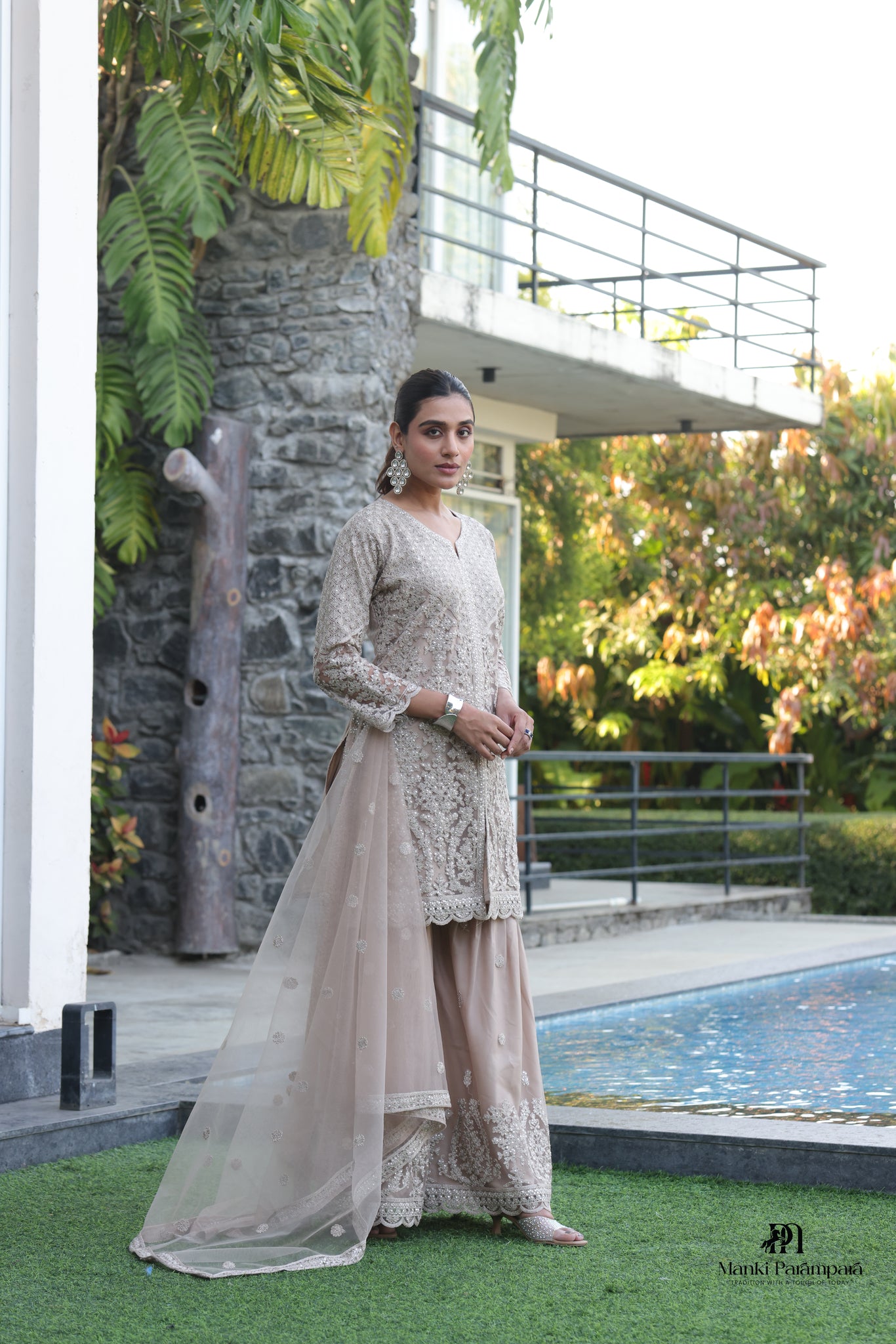 BOTTOM :- Heavy Net With Work & innar Crep Silk