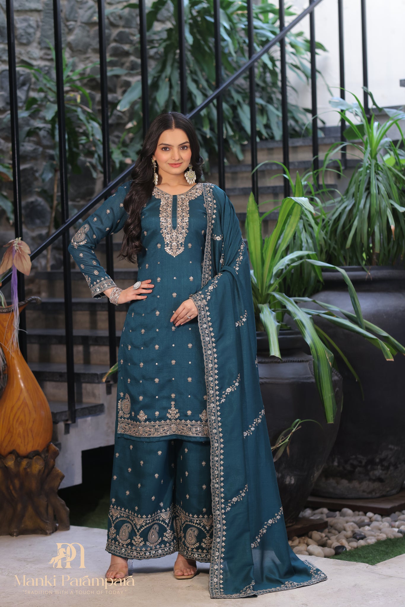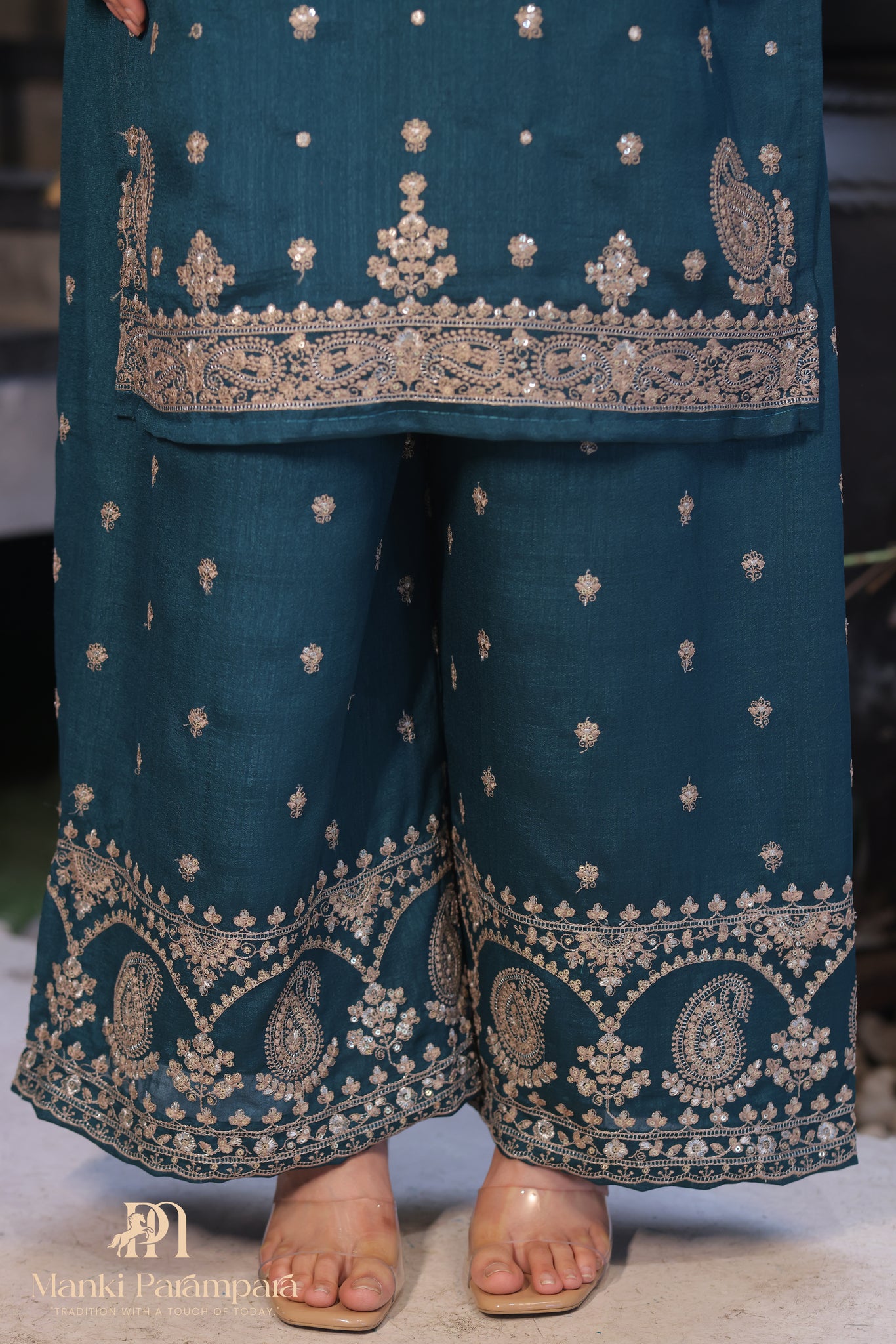 PLAZZO :- Heavy Slik Embroidery 3 mm Sequence + Coding work (2.20 mtr)